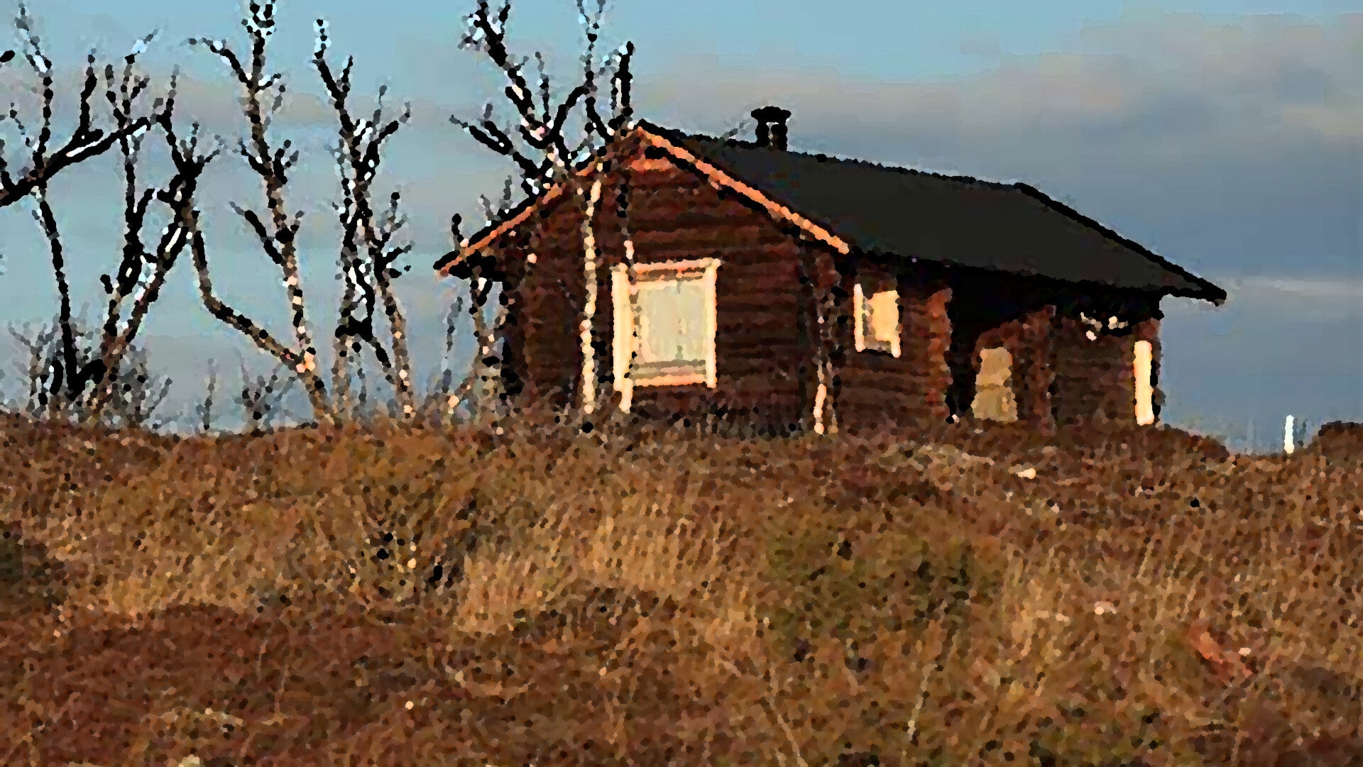 Det kjentes feil allerede da de gikk ut av bilen. Høsten var kommet langt. Overalt kratt og skog. Bak den brunbeisede hytta skimtet han fiskevannet faren hennes hadde snakket om. Det lå tåke over vannet.